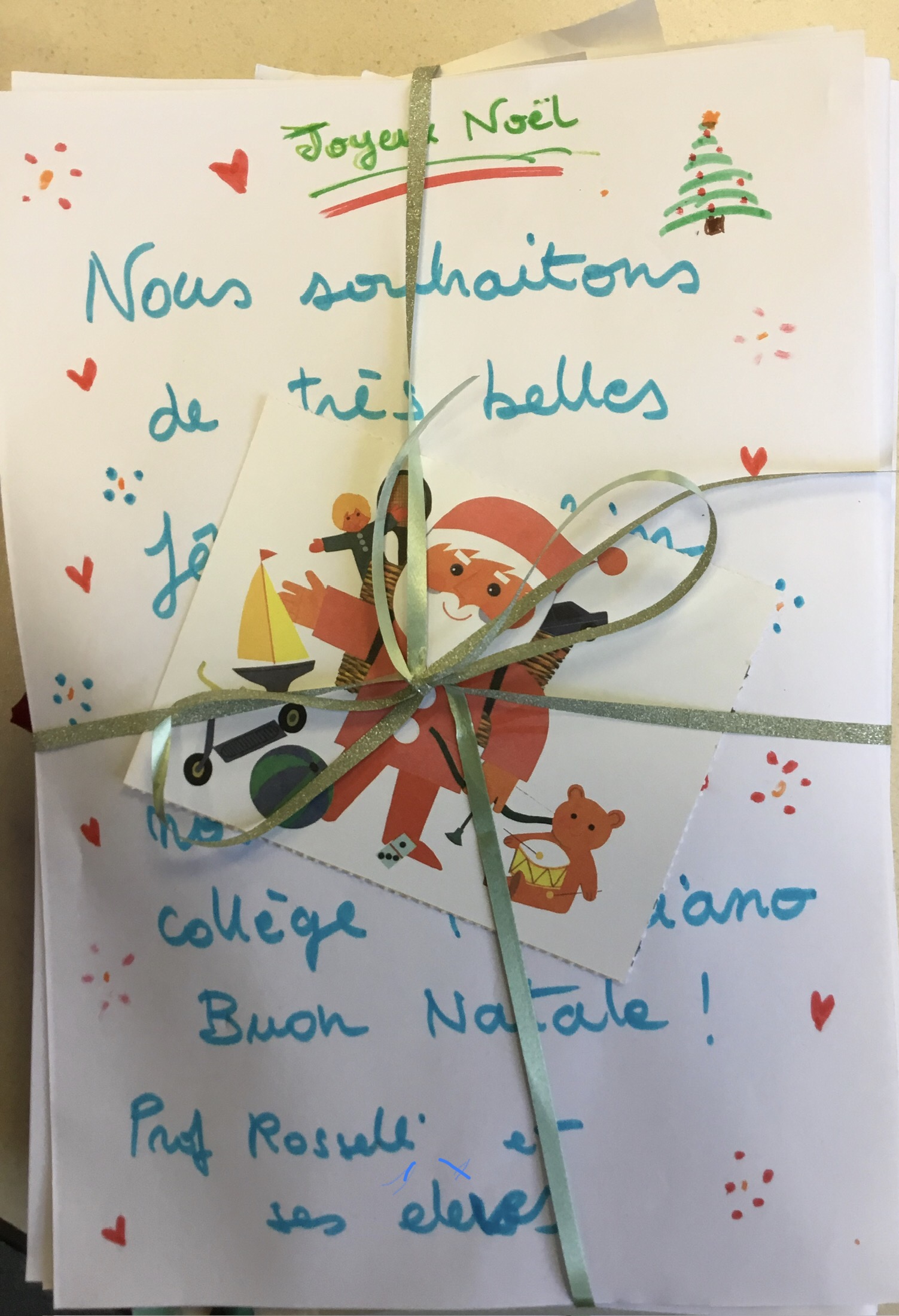 Noël approche et nos élèves italianistes ont eu une pensée pour leurs correspondants italiens’ qui sont scolarisés au Collège Agnolo Poliziano de Florence ( quelle chance!). Ils se sont appliqués sur plusieurs séances pour fabriquer des cartes de vœux et pour leur parler de ce qu’ils apprennent en ce moment. Bravo à eux !